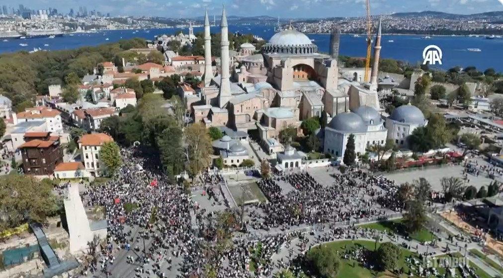 Bugün, 5 Ekim 2025 Pazar günü, öğlen namazının ardından Ayasofya Camii’nde toplanacak olan katılımcılar, Eminönü Meydanı’na yürüyecek ve Gazze’ye destek için çeşitli sloganlarla Filistin halkına dayanışma mesajı verecekler.