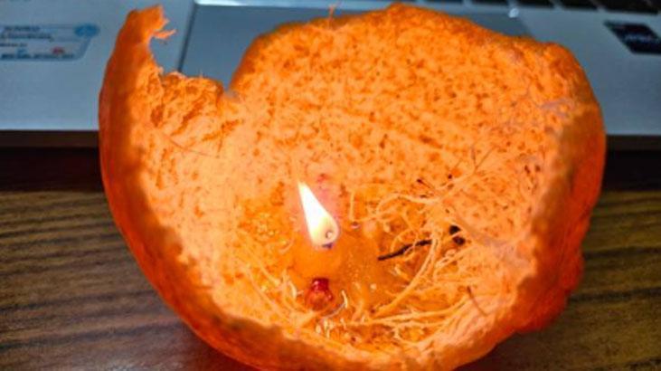 Fitilin yanması birkaç saniye sürebiliyor. Ardından kapak olarak ayırdığınız diğer kabuğu üzerine yerleştiriyorsunuz. O an mandalinanın kokusu ve sıcak ışık birleşerek küçük bir atmosfer yaratıyor. Mandalina mumluğu yaklaşık yarım saat kadar yanıyor. Bu kısa süre bile evde çok hoş bir ambiyans oluşturuyor.